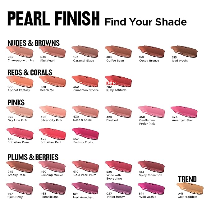 - ICONIC SHADES FOR EVERY LOOK: Now in 12 NEW shades, explore 72 timeless hues in crème and pearl finishes, offering endless ways to express your unique style.