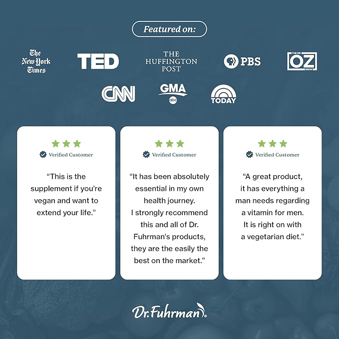 - DR. FUHRMAN’S LEGACY OF NUTRITIONAL EXCELLENCE | Backed by over 35 years of clinical experience and research, Dr. Fuhrman’s expertise is the foundation of every formula. His commitment to evidence-based nutrition has shaped supplements that are advanced, effective, and held to the highest standards. Guided by the latest science, his approach empowers you to live a longer, healthier life through smart, targeted nutrition.