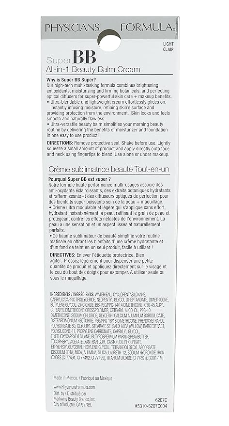 Physicians Formula Super BB Cream. All in 1 Tinted Beauty Balm Foundation Cream, Sheer Moisturizing Coverage, Cruelty free - Light