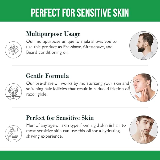 - ✅ WHY PRE SHAVE OIL: Our pre shave oil is formulated with naturally moisturizing, skin & hair loving oils like jojoba oil, grapeseed oil and avocado oil, our special formula ensures oil consistency & texture is not too thin that it does not create enough gliding or not too thick that it clogs the razors.