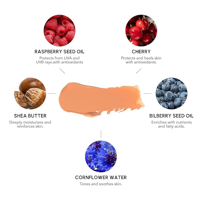 - HYDRATING NUTRIENTS WITH A TINT - Get that glowing, flawless and illuminated complexion naturally; packed with anti-aging antioxidant-rich fruits like raspberry seed oil, bilberry, cornflower water, and cherry oil.