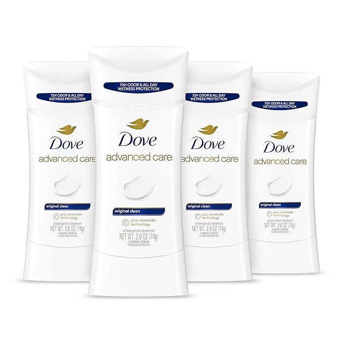 Dove Advanced Care Antiperspirant Deodorant Stick Original Clean 4 Count For helping skin barrier repair after shaving by boosting ceramide levels in your skin 2.6 oz