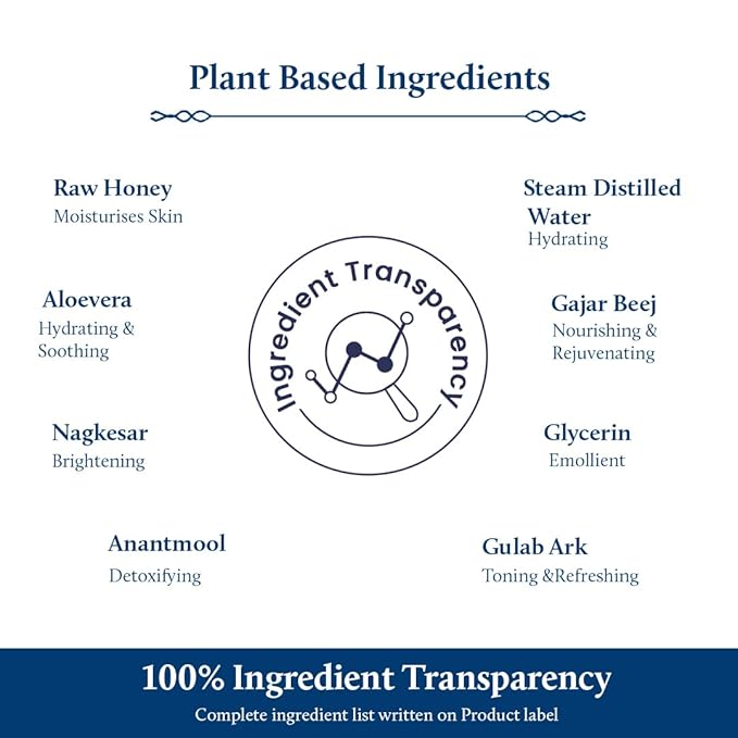 - CONTAINS 8 AYURVEDIC HERBS :All goodness of Kitchen herbs packed in a bottle for you. Honey, Alovera, Nagkesar, Anantmool are Ayurvedic Herbs and are known for toning and nourishing the skin.