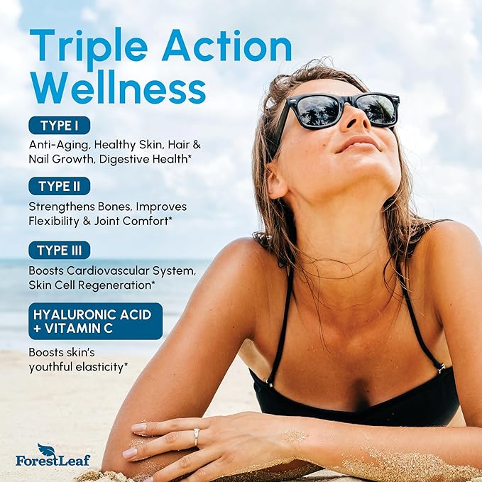 ForestLeaf Multi Collagen Pills with Hyaluronic Acid + Vitamin C | Hydrolyzed Collagen Supplements for Women or Men | Multi Collagen Capsules Peptides for Skin, Wrinkles, 240