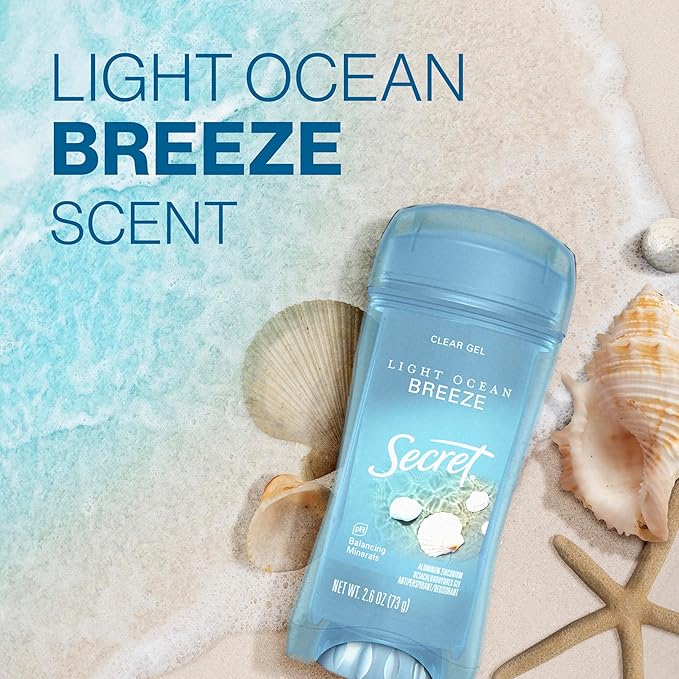 Secret Fresh Antiperspirant Deodorant for Women, 72hr Breathable Sweat & Odor Protection, Instant Freshness & Gentle, PH Balancing Minerals, Clear Gel, Light Ocean Breeze Scent, 2.6 oz