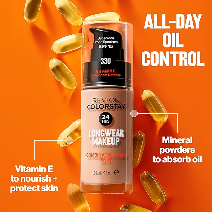Revlon Liquid Foundation, ColorStay Face Makeup for Combination & Oily Skin, SPF 15, Medium-Full Coverage with Matte Finish, 620 Java, 1 Fl Oz