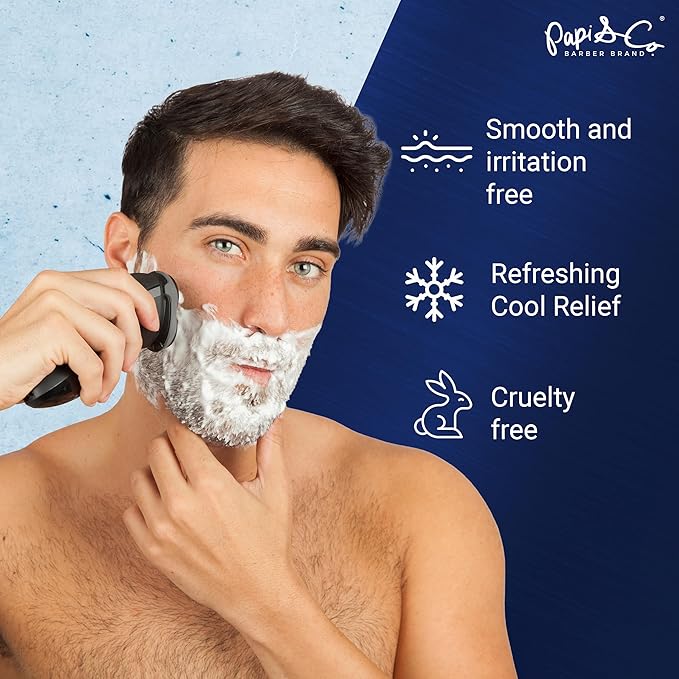 Papi & Co. Shave Gel Men – Sensitive Skin Shaving Gel with Brazilian Mint Oil – Clear Non-Foaming Formula for Beard and Mustache – Moisturizing Barber Grooming Skincare, Alcohol-Free – 8.6oz