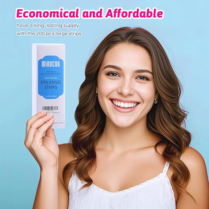 200 Pieces Large Non-woven Wax Strips for Body and Facial Hair Removal, Salon Quality Epilating Strips