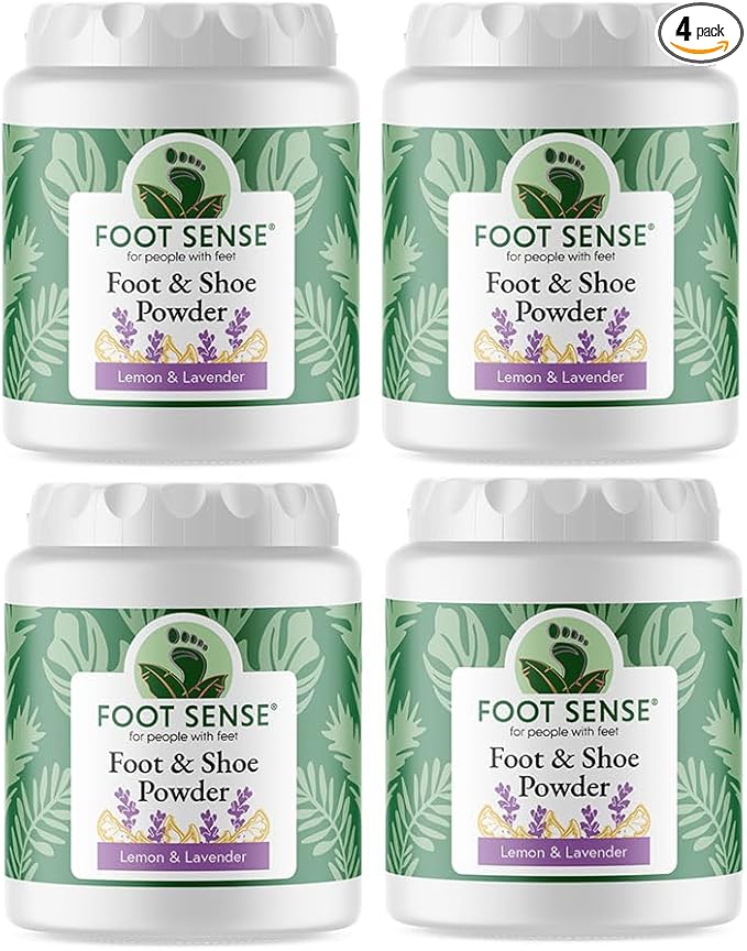 FOOT SENSE All Natural Foot & Shoe Powder, Foot Deodorant, Talc-Free, Odor Eliminator, Disinfects & Deodorizes, Long-Lasting up to 6 Months Safe for Men, Women, Kids, Athletes, 50g (4 Pack)