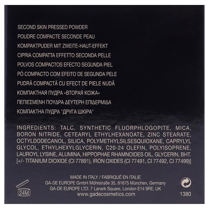 GA-DE Longevity Second Skin Pressed Powder - Face Makeup - Blurs Imperfections and Smooths Fine Lines - 506 Light Medium - 0.39 oz Foundation Powder