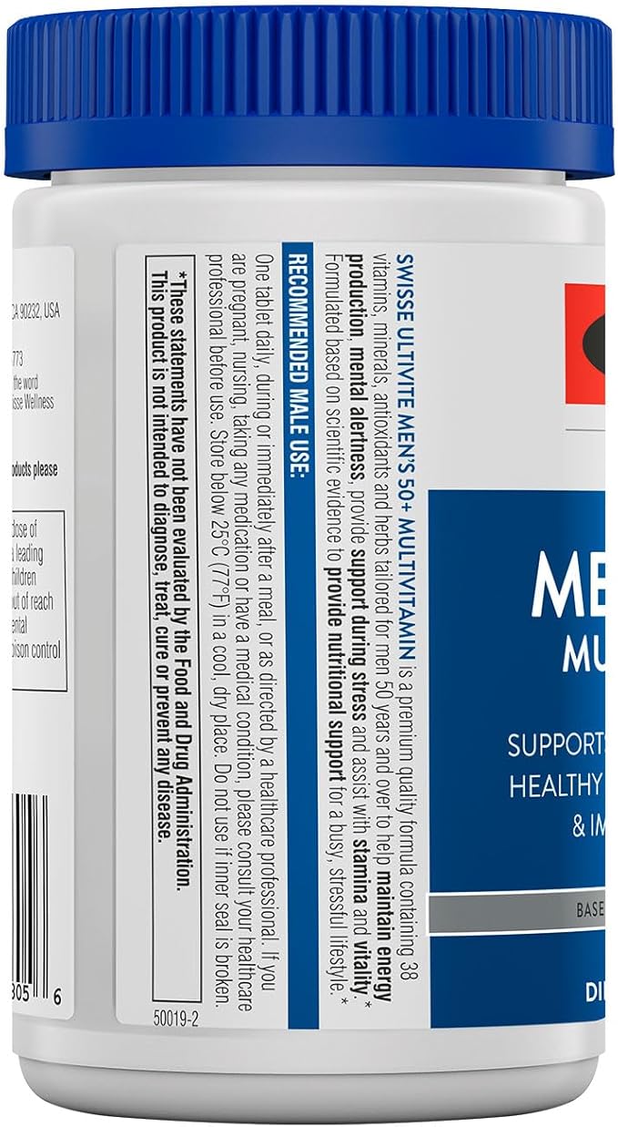Swisse Daily Multivitamin for Men 50 and Over | 39 Vitamins, Antioxidants and Minerals + Adaptogens | Energy & Immune Support | Mens 50+ Multivitamins Supplement | 60 Tablets