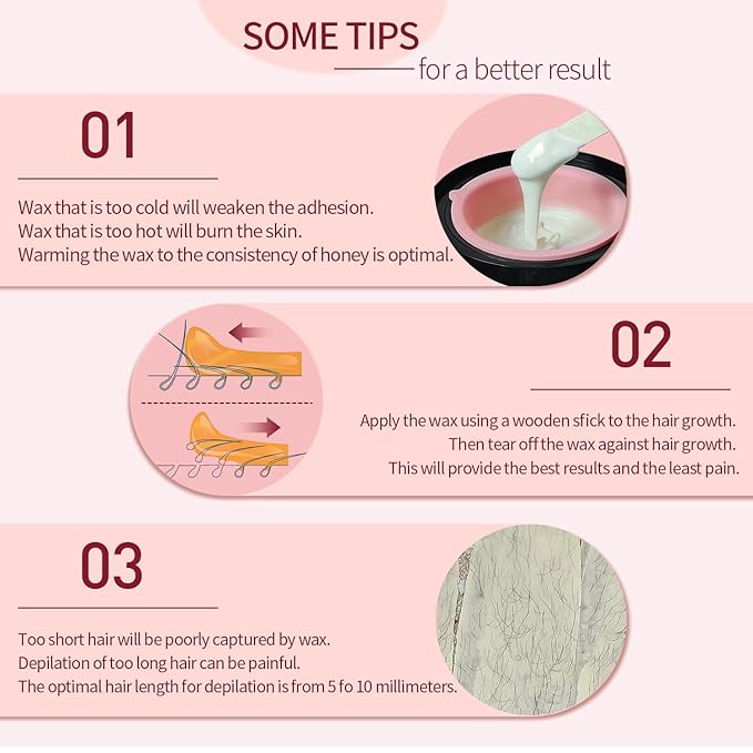 - 【SAFE WAX WARMER】: New waxing warmer uses durable ABS heat-assisted material to prevent overheating durable than many machines on the market. Capable of heating hard wax, canned wax, wax beads, Brazilian wax, wax blocks. Wax warmer kit is body safe, can be used for face, eyebrow, nose, lip, cheek, arms, armpit, chest, leg, hands, legs, bikini line and private area. New waxing kit specially formulated wax has a smoother application to minimize irritation with natural ingredients.