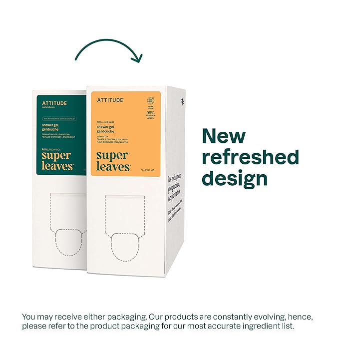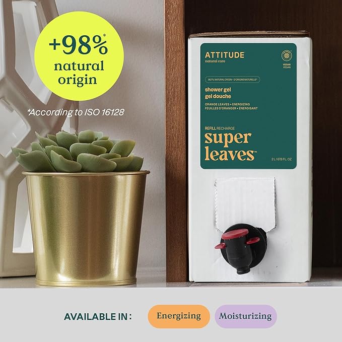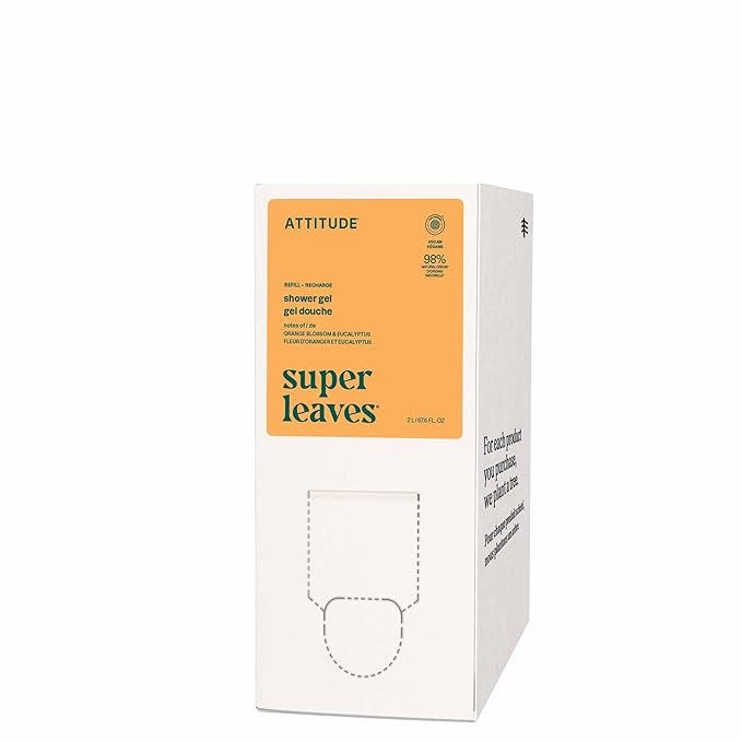 ATTITUDE Body Wash, EWG Verified Shower Gel, Dermatologically Tested, Plant and Mineral-Based, Vegan Personal Care Products, Orange Blossom & Eucalyptus, Bulk Refill, 67.6 Fl Oz