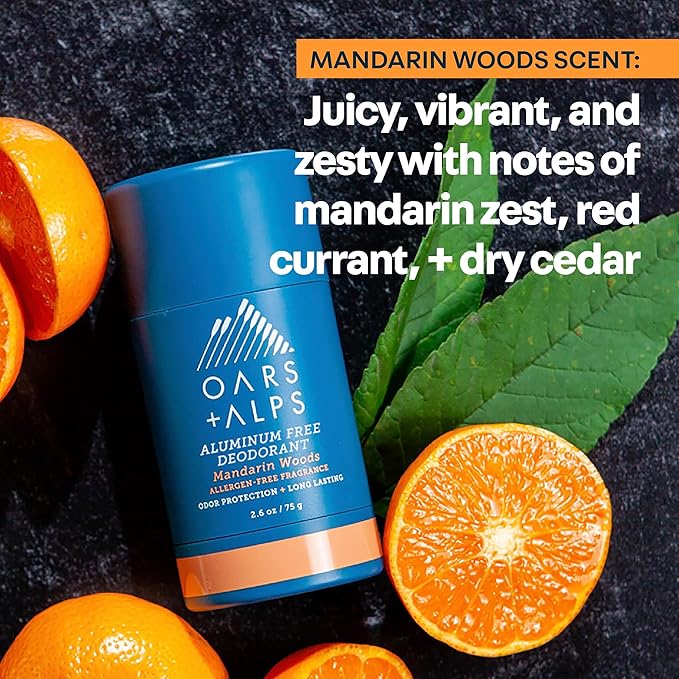 Oars + Alps Deodorant for Men & Women, Aluminum Free Deodorant for Men, Dermatologist Tested, Clean Ingredients, Vegan, Long Lasting, Mandarin Woods, 2pk, 2.6oz