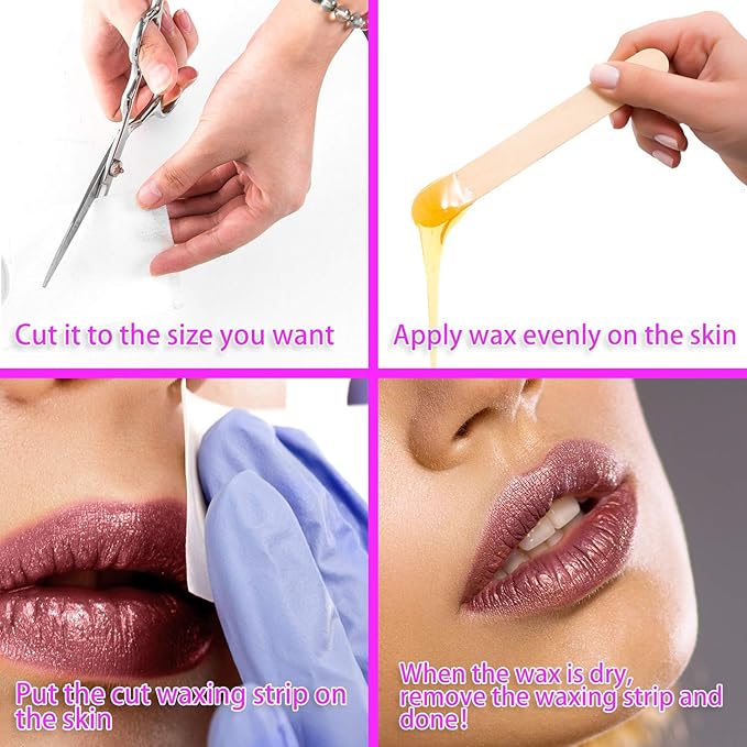 - ✔EASY USE: Apply the hair removal wax strips to the area with hot wax that making sure it's firmly pressed to skin and then pull the strip in the opposite direction of the hair growth staying close and parallel to the skin.