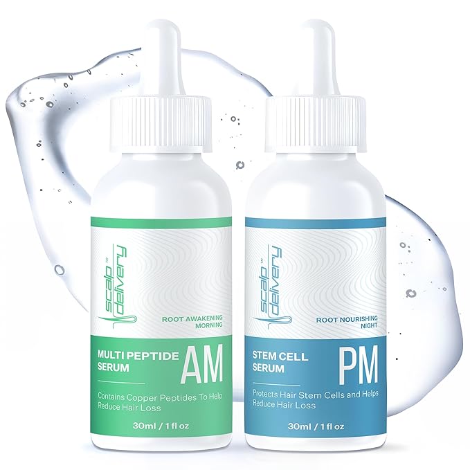 Peptide & Stem Cell Hair Growth Serum, AM & PM Bundle – Formula with Apple Stem Cells for Thicker, Stronger Hair – Stem Cell Scalp Serum for Hair Growth and Nourishment for Men & Women