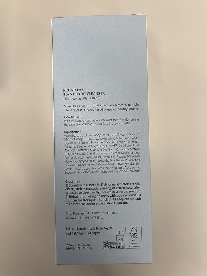 ROUND LAB 1025 Dokdo Cleanser 5.07 Fl Oz, Low pH Facial Cleanser for Sensitive Skin, Rich Soft Bubbles for Deep Cleansing and Makeup Removal, Hydrating Face Wash with Deep Sea Water, Korean Skin Care