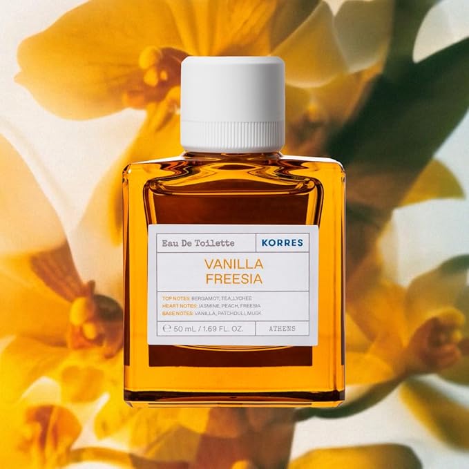 KORRES Eau De Toilette, Vanilla Freesia Fragrance Spray, Unisex Perfume With Lychee, Peach, Crisp Bergamot, Warm Vanilla And Patchouli, Floral Amber Scent For Women And Men, 1.69 Fl Oz