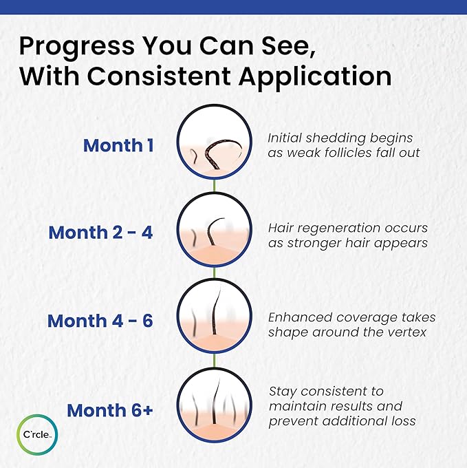 - RESULTS IN AS LITTLE AS 12 WEEKS — These mens hair growth products support rapid and visible hair regrowth. Promote significant hair regrowth with C’rcle foam minoxidil for men, which supports results in just 12 weeks. The extra-strength minoxidil 5 percent formula, available in both foam and topical forms, is highly effective in promoting thicker, fuller hair, revitalizing hair follicles for sustained hair regrowth