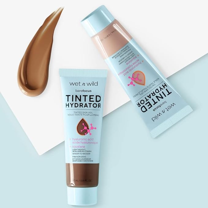 wet n wild Bare Focus Tinted Hydrator Tinted Skin Veil, Lightweight Buildable Coverage with Hyaluronic Acid & Vegan Squalane, Semi-Matte Finish, Cruelty-Free - Medium Deep