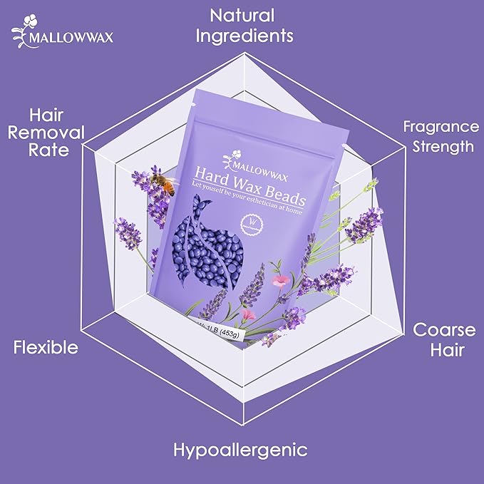 - Gentle Lavender Formula - Our lavender wax beads for hair removal are made from fresh, premium lavender sourced from South East England, preserving its skin-friendly properties. Gentle and effective, Mallowwax formula is a natural choice for hair removal