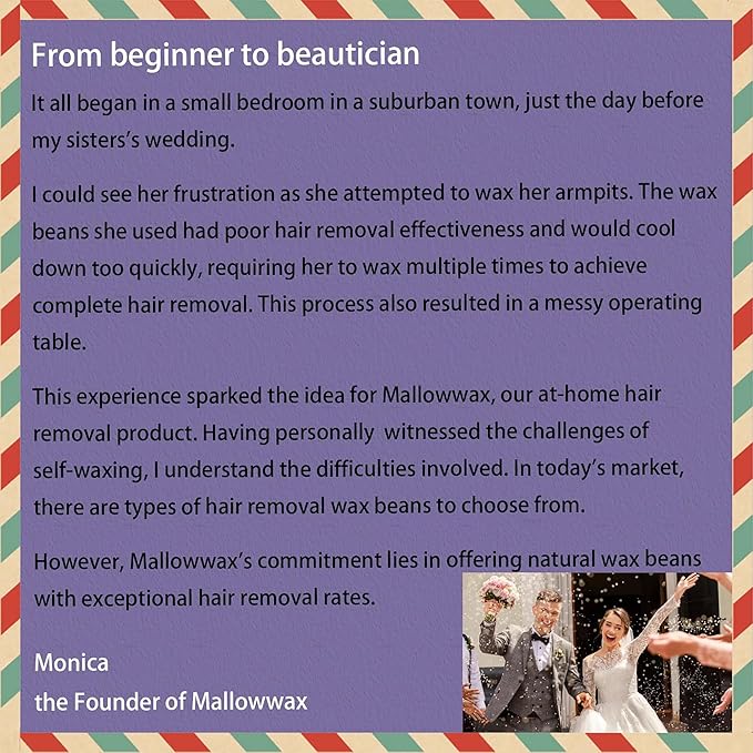 - At-Home Salon Experience - Get the salon experience at home with Mallowwax's refillable hard wax beans. Enjoy the convenience of waxing on your own time, while maintaining privacy and sanitation. Save time and money without sacrificing quality