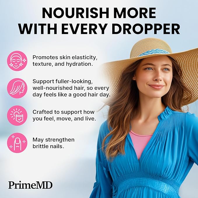 - Liquid Collagen Peptides - 4 holy grail ingredients merge to support hair, skin and nails vitality. Each drop of our biotin liquid has collagen, Keratin, and Saw Palmetto to support a holistic routine for wellness and beauty.