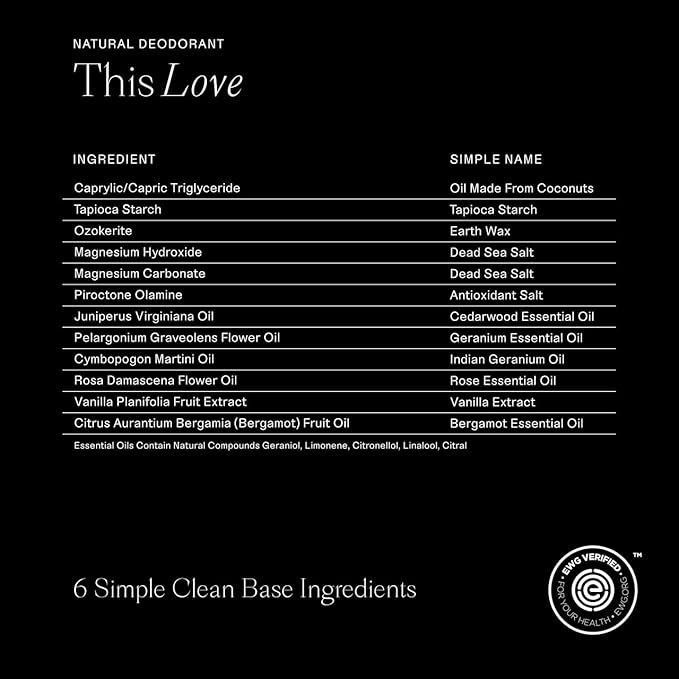 - Simple Ingredients That Work - We believe each and every ingredient matters. That's why we partner with individual farmers and distillers to ensure quality, safety and transparency in each all natural deodorant.