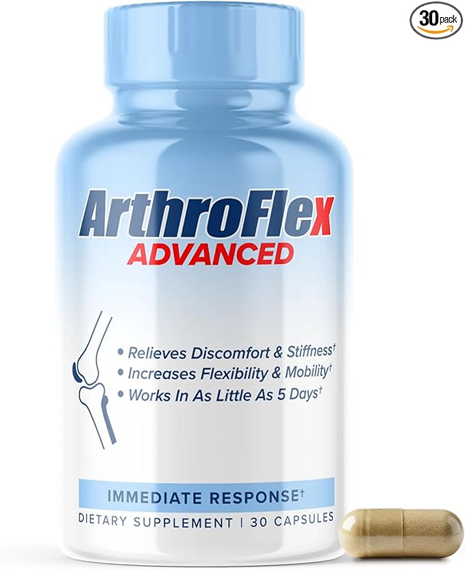 - COMPREHENSIVE 5-IN-1 JOINT SUPPORT FORMULA: Discover the advantages of joint supplements for men and women with ArthroFlex Advanced, designed for those facing joint discomfort and in need of mobility enhancement. This joint support supplement combines the advantages of Type II Collagen, Turmeric Curcumin, Boswellia Serrata to target mobility, flexibility, strength, lubrication, and comfort. It’s natural formula supports cartilage health, reduce stiffness, and enhance overall joint function.
