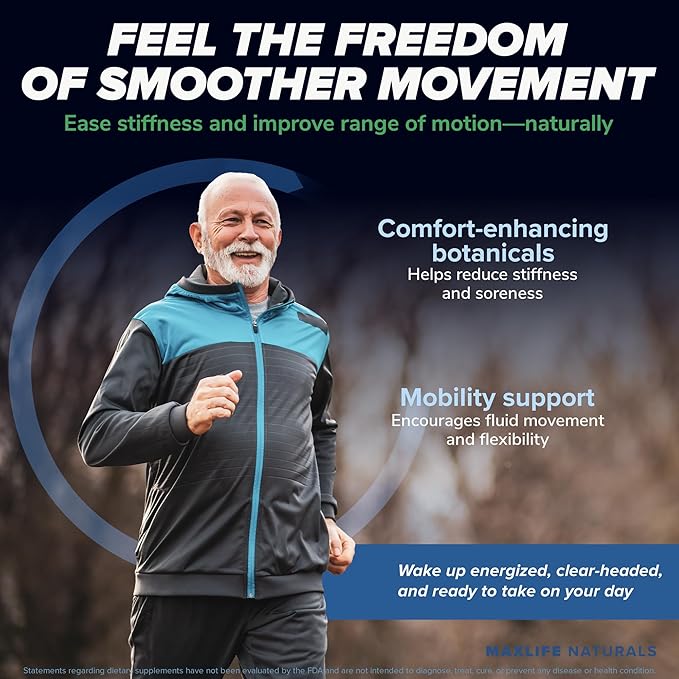 - SWIFT COMFORT FOR ENHANCED WELL-BEING: MaxLife Naturals joint supplements for women and joint health supplement for men offer joint vibrance and comfort. The joint vitamins for men and women elements enhance joint health by harnessing potent comfort-enhancing and supporting ingredients, giving you improved physical function. Our tendon and ligament supplements, and knee joint supplement offers flexibility and mobility for you to enjoy daily activities without hindrance.