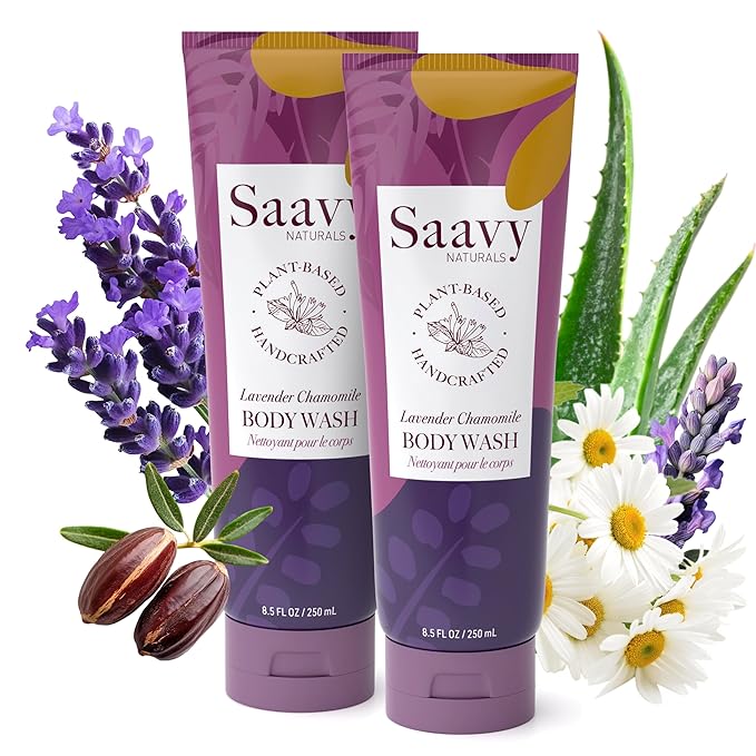 Saavy Naturals Body Wash Lavender Chamomile Plant-Based Ingredients - Made In USA - Sensitive Skin Body Wash - Organic Formula With Coconut Oil,Shea Butter, And Aloe Vera - 8.5 Fl Oz, 2 Pack