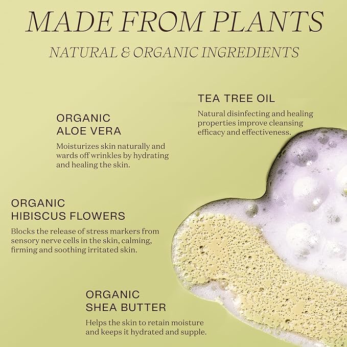 - MOISTURIZING FOR SENSITIVE, DRY & ALL SKIN TYPES: Organic aloe vera and organic shea butter effectively clean dirt and impurities while preserving oils, hydrating and moisturizing the skin. Safe for all skin types, including sensitive, dry, and oily, leaving your skin fresh and hydrated.