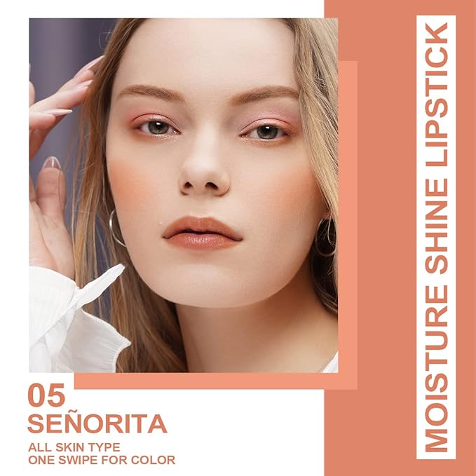 Oulac Orange Nude Shine Lipstick - Peach Moisturizing Lip Stick Glossy Tinted Lip Balm, Sheer Shine Juicy Finish, Lightweight and Hydrating Formula for Dry Lip Care, Vegan 2.2g/0.07oz (05)