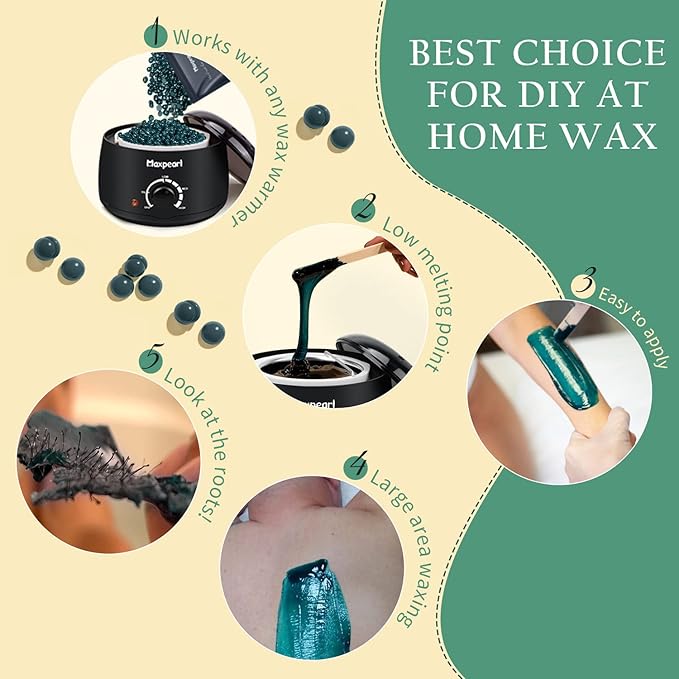 - BEGINNER FRIENDLY & EASY TO USE: Maxpearl Wax is straightforward and convenient to use. Save time and money, no strips needed! With low-temperature application, this body wax can be easily applied on both small and large areas. Once hardened, the wax becomes firm yet remains pliable and flexible, making it very easy to peel off without leaving any sticky residue.