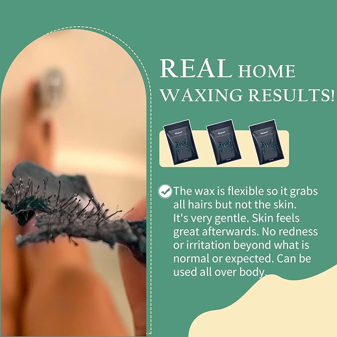 - EASY TO USE AT HOME WAX: No strip needed! Low temperature application, allows it easy to spread over small and large areas and cools fast. Waxing at home can be quicker and more convenient with our strip-less hard wax beans. It’s gentle yet effective. It sticks only to the hair not the skin, removes hairs from the root which will leave skin smooth for weeks.