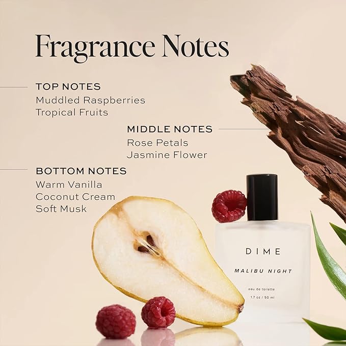 DIME Beauty Perfume Malibu Night, 1.7 oz / 50 ml - Light and Floral Musk Scent, Hypoallergenic, Clean Perfume, Eau de Toilette For Women