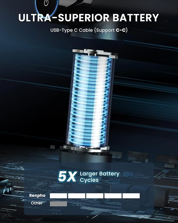 - BUILT-IN BLUETOOTH - Connect to the Renpho Health App via Bluetooth for a customized percussion therapy experience with professional muscle recovery video courses.