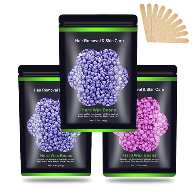 - Hard Wax Kit for Hair Removal with Sticks: This wax bean kit includes 3 packs of various flavor premium waxing beads (such as blue wax) and 10 large wax sticks, bikini wax, face wax, leg wax, and eyebrows wax can achieve your smooth skin in minutes
