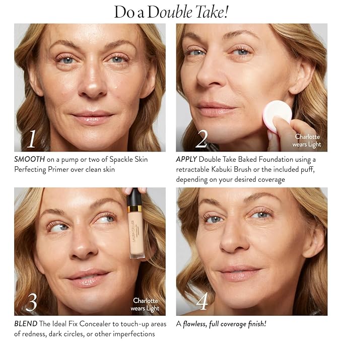- DOUBLE TAKE BAKED BUILDABLE FULL COVERAGE POWDER FOUNDATION: Get skin that gets a double take. This foundation gives you instant elegance with full coverage, a classic matte finish that's never cakey, and a long-wear formula that doesn't fade. Handmade in Italy, the creamy formula feels like a treat for skin.