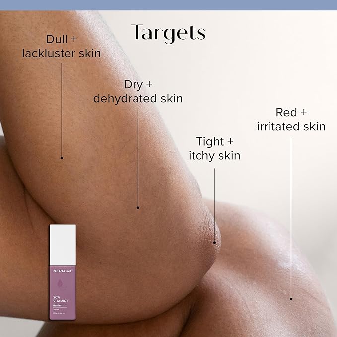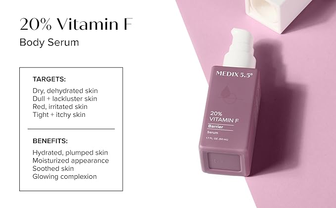 - MOISTURE BOMB – A rich moisture bomb of Vitamin F replenishes tight dry skin, helps protect the skin from environmental stressors that cause premature aging, and supports a healthy skin barrier. Continued use of Vitamin F in your daily skin care routine will help visibly diminish the appearance of wrinkles, redness of skin, flakey dry skin, & fine lines by promoting healthy skin that looks & feels hydrated.