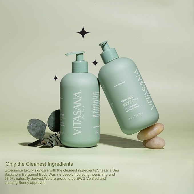 Natural Body Wash for Sensitive Skin, 16 oz – Sea Buckthorn & Bergamot Scent, 98.9% Plant‑Derived, EWG Verified, Hypoallergenic, Paraben‑Free, Sulfate‑Free, Cruelty‑Free