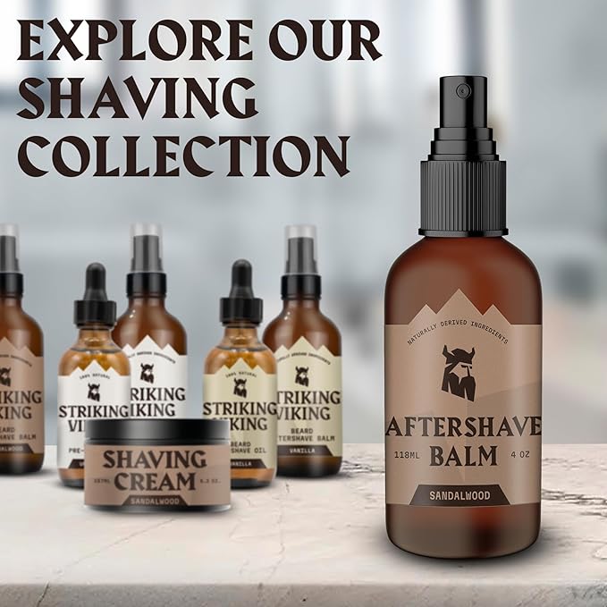 - Viking Strength Simplicity: Striking Viking's sandalwood aftershave for men embodies timeless strength with modern ease. Tackle the elements with confidence, keeping your skin in check no matter where your day takes you