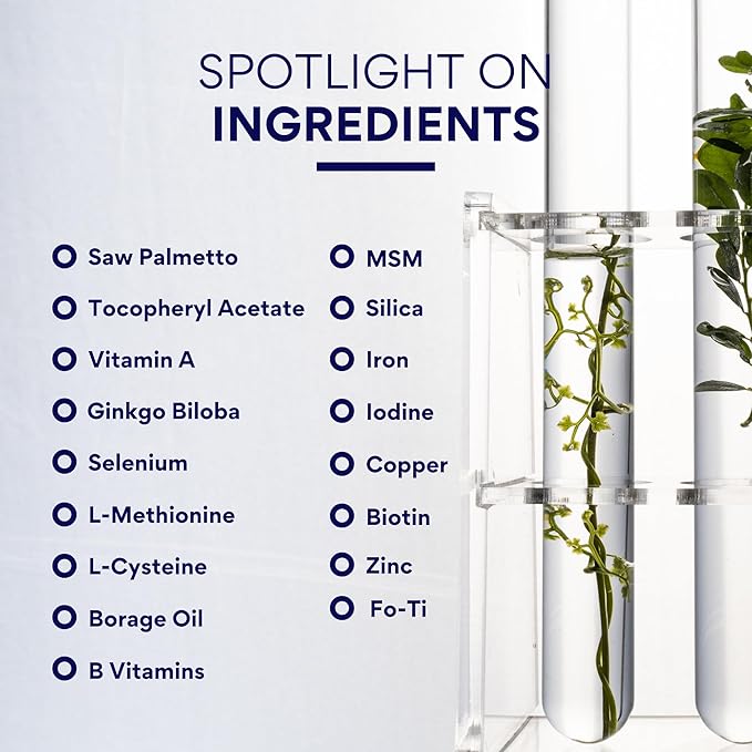 - Rooted in Science Includes 400 mg of Saw Palmetto, plus MSM and amino acids to help maintain stronger, healthier-looking hair.