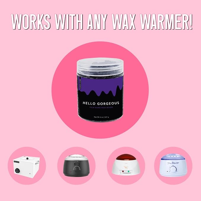 Miss Cire Purple Hard Wax Beads - Painless Hair Removal Peel-Off Wax - No Strips Needed - Low melting Point - Gel Like Consistency - For Face and Body - Hello Gorgeous - For Sensitive Skin - 8oz