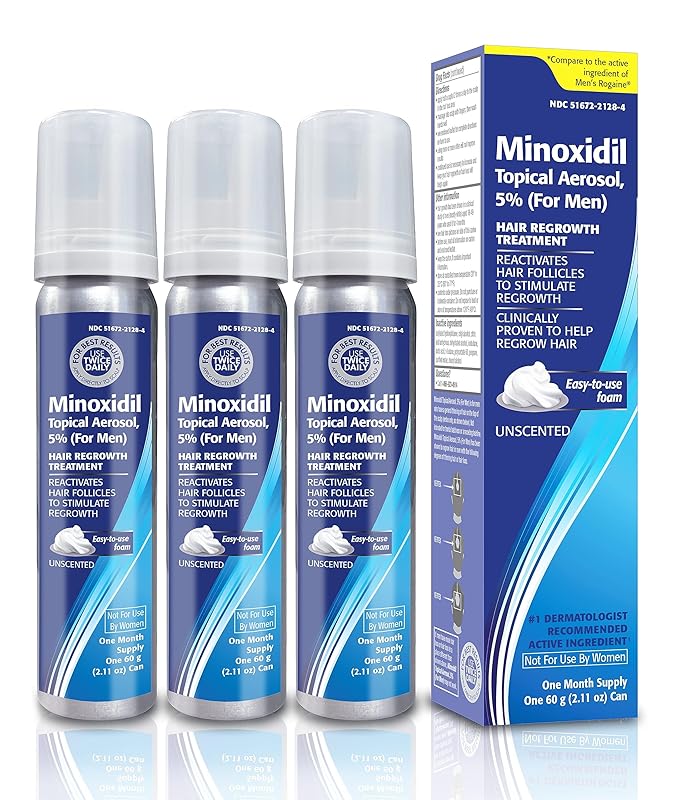 Taro Minoxidil Topical Aerosol Foam, 5%, Hair Regrowth 3 Months Treatment for Men, 2.11 oz (3 Pack)