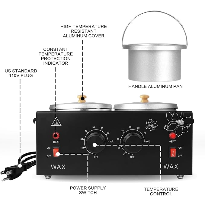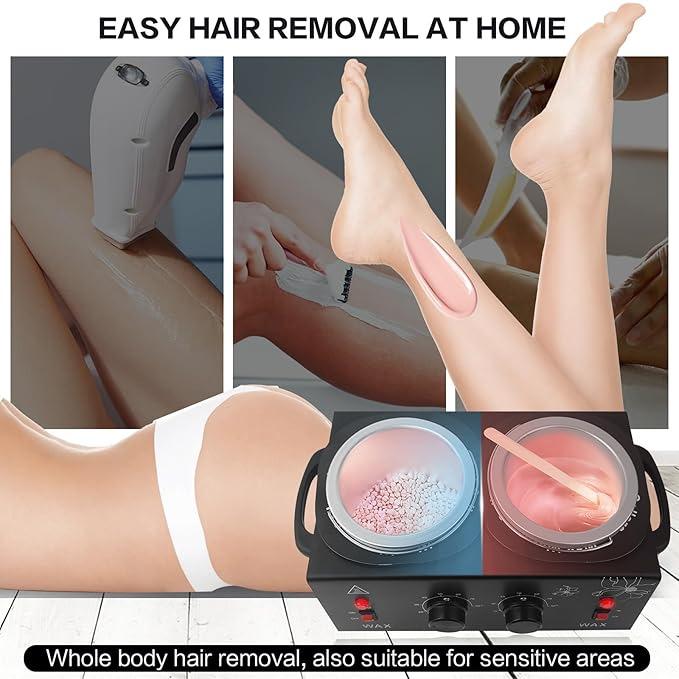 - 【Ideal Home Wax Heater】: You can finish the full body hair removal process at home, perfectly solve the body hair problem and making you look more clean. The dual pots allow it to melt two different types of wax simultaneously. It is an ideal home essential and easy to operate, just buy it for your family!