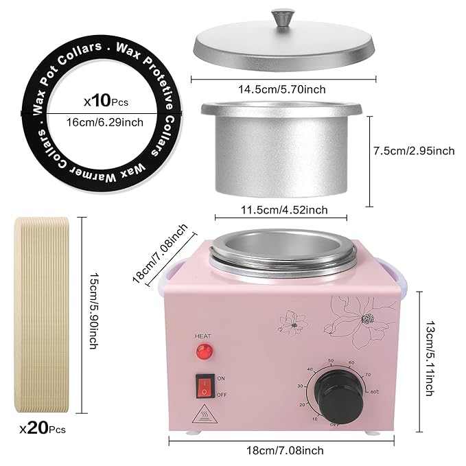 - 【Wide Application】: Our wax warmer can be used for hair removal on hands, feet, face, and the whole body. Perfect for melting Brazilian wax beans or wax cubes for hair removal and many other types of wax.