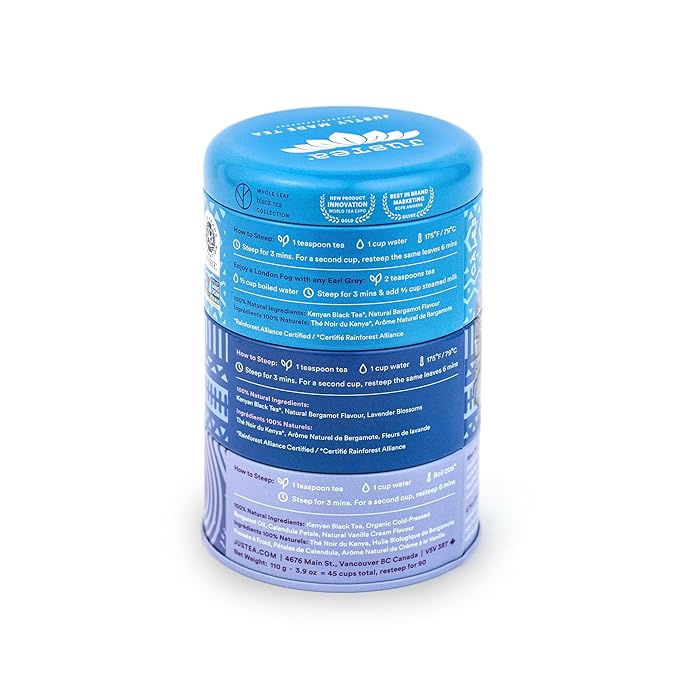 JusTea EARL GREY TEA TRIO | Stacking Tins Variety Pack with Hand Carved Tea Spoon | Loose Leaf Tea | High Caffeine | Fair Trade | Non-GMO