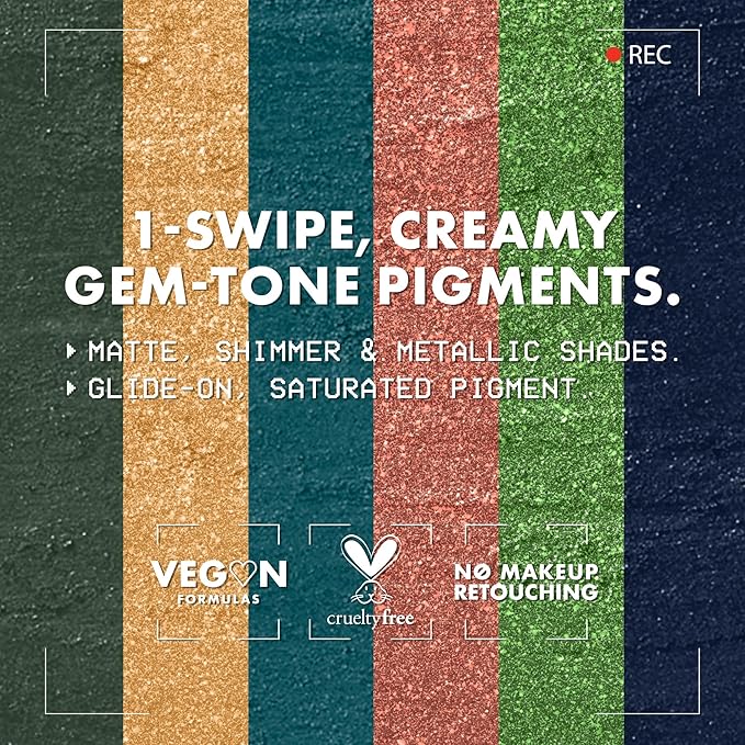 - Product Benefits : It's time to unlock your richest look yet & grab your favorite matte, shimmer, & metallic shades. From spicy pearl to amber stunner these will be your prized gems for the most vivid eye looks ever! 12, 1-swipe vivid shades, loaded with creamy gem-toned pigments. Liner looks now made easy. Mix & match or go monochrome! It's time to unlock your richest look yet & grab your favorite matte, shimmer, & metallic shades. From spicy pearl to amber stunner these will be your prized gems for the most vivid eye looks ever! 12, 1-swipe vivid shades, loa… See more