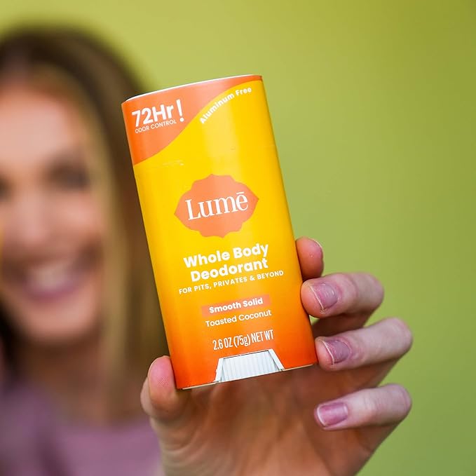 Lume Whole Body Deodorant - Smooth Solid Stick - 72 Hour Odor Control - Aluminum Free, Baking Soda Free and Skin Loving - 2.6 Ounce (Pack of 3) (Toasted Coconut)